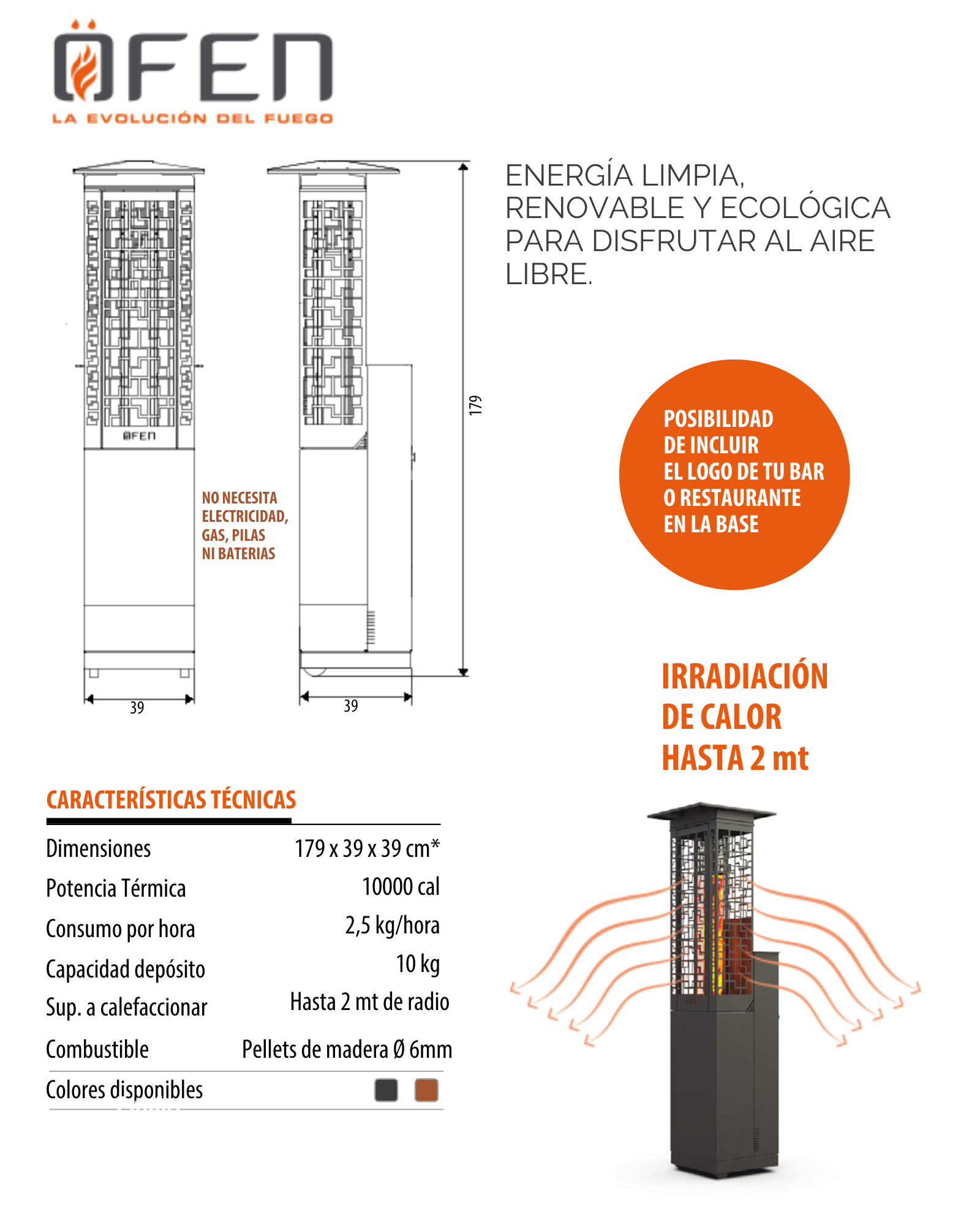 Con un diseño exclusivo, sumado a la practicidad de uso y su alto rendimiento, nos encontramos con un producto sin precedentes. No sólo conmueve e hipnotiza el largo recorrido de la llama, sino que tiene el poder de mantenernos cálidos y templados los primeros dos metros alrededor de la estufa. Está dirigida tanto para uso doméstico (galerías, terrazas, balcones, quinchos, jardines) como comercial (bares, restaurantes, salones de eventos, etc).