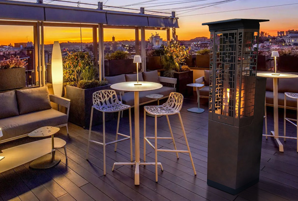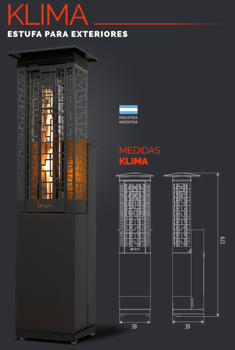 KLIMA es la opción ideal para crear un ambiente cálido en galerías, balcones, terrazas, quinchos, jardines, patios, bares, restaurantes, salones de eventos, etc