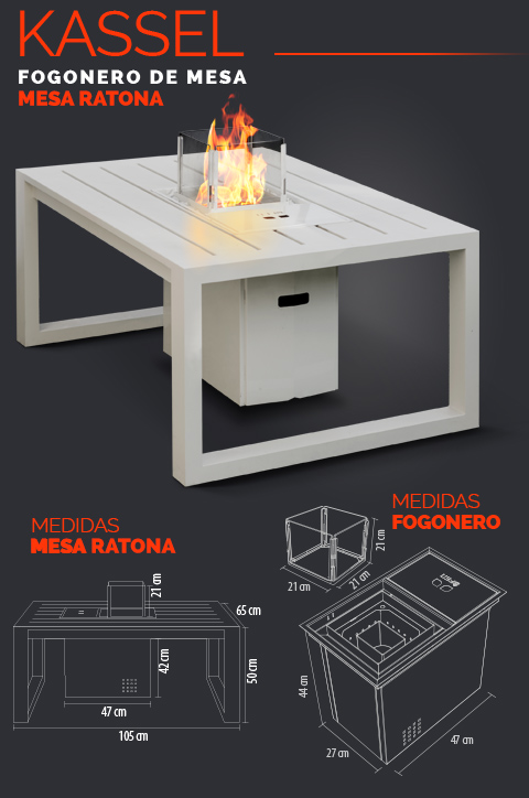 Se puede adquirir solamente el fogonero KASSEL para poder adaptarlo fácilmente a tu mesa + accesorio a elección.