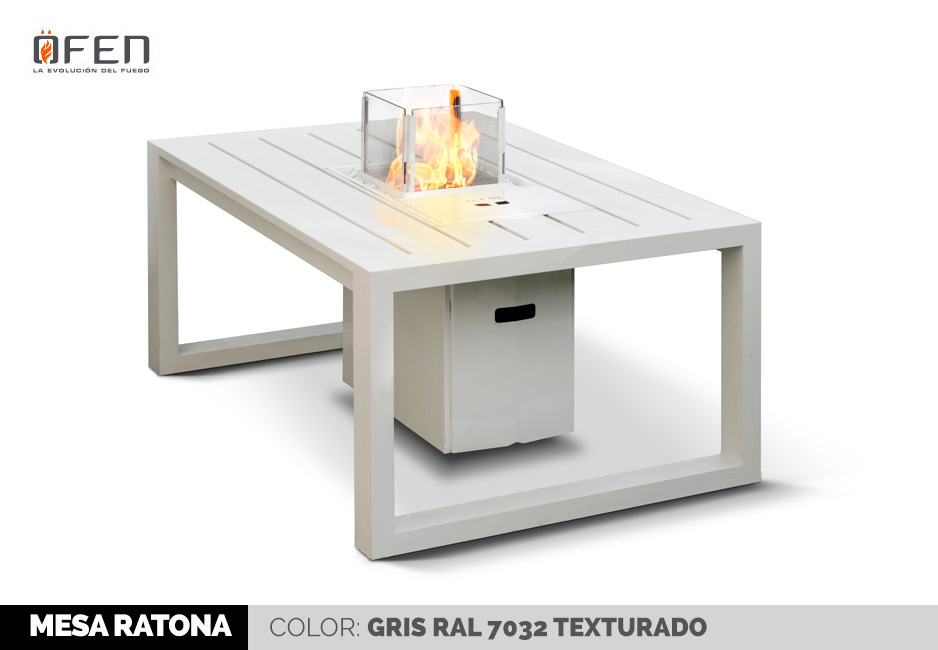 Se puede adquirir la mesa ratona (de aluminio) con el fogonero KASSEL colocado + accesorio a elección.